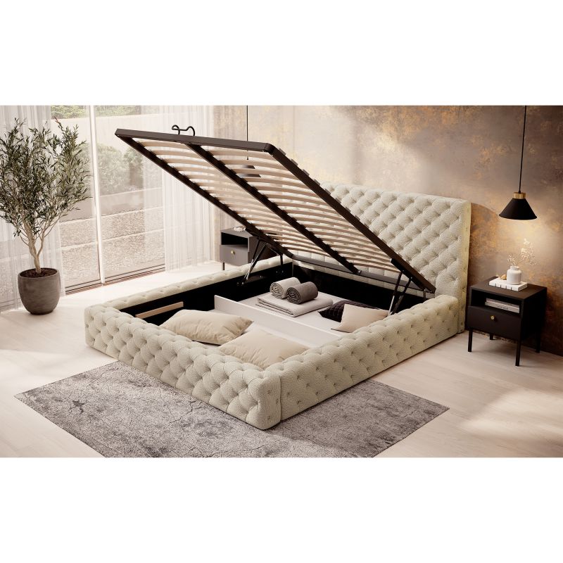 A Princce ágy egy egyedi bútordarab, amely egyesíti a stílust, a funkcionalitást és a kényelmet. Kiváló pihenőhelyet biztosít, a Princce ágy ideális választás bármely hálószobába. A tartós fémvázból készült Princce ágy nemcsak szilárdságot, hanem hosszú élettartamot is biztosít. Ülésmagassága 30 cm, háttámlája pedig 87 cm-ig ér, így biztosítva a kényelmet a pihenés során. Az ágy praktikus tárolórekeszt tartalmaz az ágynemű számára, amely kényelmes megoldást kínál további tárgyak tárolására. Az ágy lábai fekete bútorcsúszókból készültek, amelyek nemcsak modern megjelenést kölcsönöznek, hanem megkönnyítik a mozgást is. A készlet 36 lécet tartalmaz, amelyek megfelelő alátámasztást biztosítanak a matracnak. Fontos azonban megjegyezni, hogy a matracot nem tartalmazza a készlet, így a szabadságot a személyes preferenciáknak megfelelő matrac kiválasztására. A Princce ágy különböző méretekben kapható, így az egyéni igényekhez és a hálószoba méretéhez igazítható. Ezenkívül az ágy díszíthető dekoratív tufttal, ami eleganciát és egyedi jelleget kölcsönöz neki. Összefoglalva, a Princce ágy a stílus, a funkcionalitás és a kényelem kiváló kombinációja.