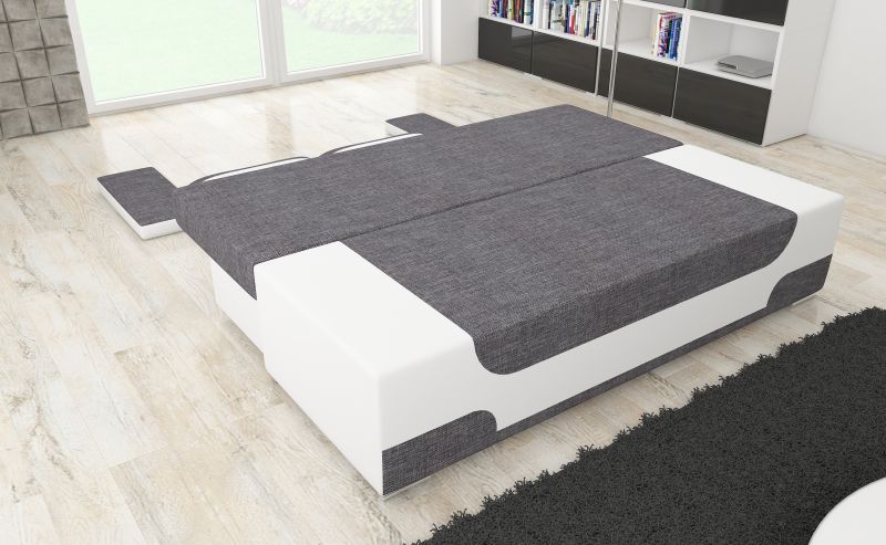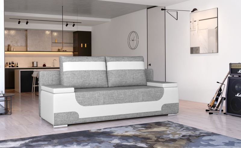 Az Area egy modern, funkcionális és eredeti kanapé az eredeti megoldások kedvelőinek. Geometrikus forma, stílusos díszítések a kárpiton és a párnákon, eredeti, más árnyalatú kárpitbetét, amely a kanapé alsó részén, az oldalakon és a párnákon található - mindez rendkívül eredeti hangulatot kölcsönöz az Area kanapénak. Érdemes megemlíteni a széles karfákat, a megfelelően profilozott háttámlát és a további, tágas párnákat is, amelyek növelik a használat kényelmét. Az Area egy 200 x 92 x 90 cm méretű bútor - a nappali pihenéshez, és az alvófunkciónak köszönhetően - egy 200 x 140 cm-es ágy, amelyhez még egy tágas tároló is tartozik az ágynemű számára. Az egészet egy DL nyitható mechanizmus támogatja. A bonel és a T25 habszivacs használatának köszönhetően a kanapé ülése rendkívül rugalmas és puha. Egyszerű forma, karcsú kivitel és modern design - ilyen az Area kanapé. Mi mellette vagyunk!