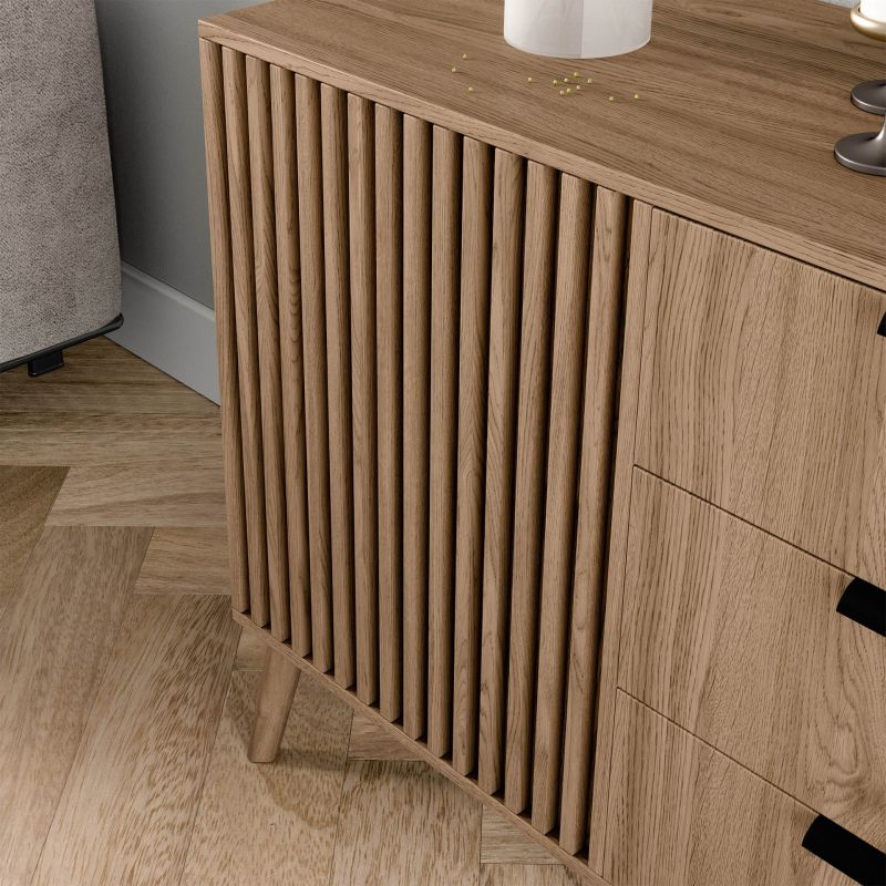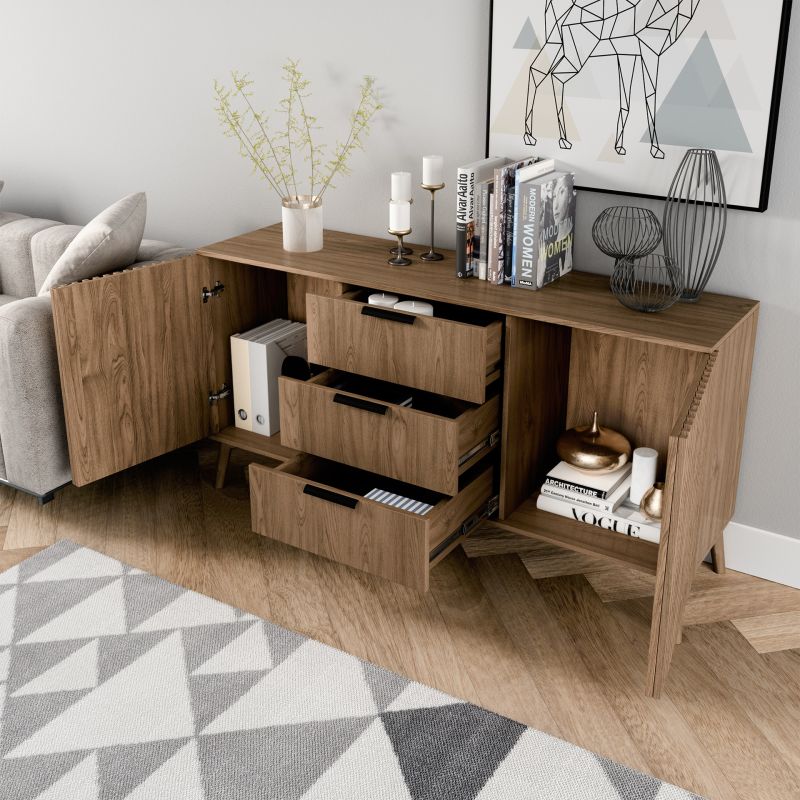Az Entsian komód egy kiváló bútordarab, amely ötvözi a funkcionalitást az eleganciával, egyedi hangulatot teremtve az Ön belső terében. A 40 cm mélységű, 150 cm széles és 72 cm magas tágas komód rengeteg tárolóhelyet kínál különböző tárgyak számára. A tartós, 16 mm vastag deszkából készült Entsian komód masszív konstrukciót biztosít, amely hosszú éveken át kitart. A 12 cm magas falábak stabilitást és finomságot kölcsönöznek a bútornak, harmonikus megjelenést biztosítva. Az Entsian komód három fiókkal rendelkezik, amelyek tökéletesen alkalmasak a kisebb tárgyak tárolására, valamint két pár ajtóval, amelyek további helyet rejtenek a nagyobb tárgyak számára. Az ajtófrontok ráadásul gyönyörűen kidolgozott, faragott részletekkel vannak ellátva, ami egyedi jelleget és esztétikai vonzerőt kölcsönöz a bútornak. Az Entsian komód fiókjai ABS peremmel vannak ellátva, ami tartósságot és védelmet nyújt a sérülésekkel szemben. Így hosszú élettartamú és esztétikus megoldást élvezhet. Az Entsian komód tökéletes kiegészítője a különböző lakberendezési stílusoknak, a moderntől a klasszikusig. Tágas belseje és praktikus megoldásai megkönnyítik a rendszerezést és a rend fenntartását otthonában. Emellett a faragott frontok jellegzetes megjelenést kölcsönöznek a komódnak, amely vonzza a figyelmet és eleganciát kölcsönöz neki.